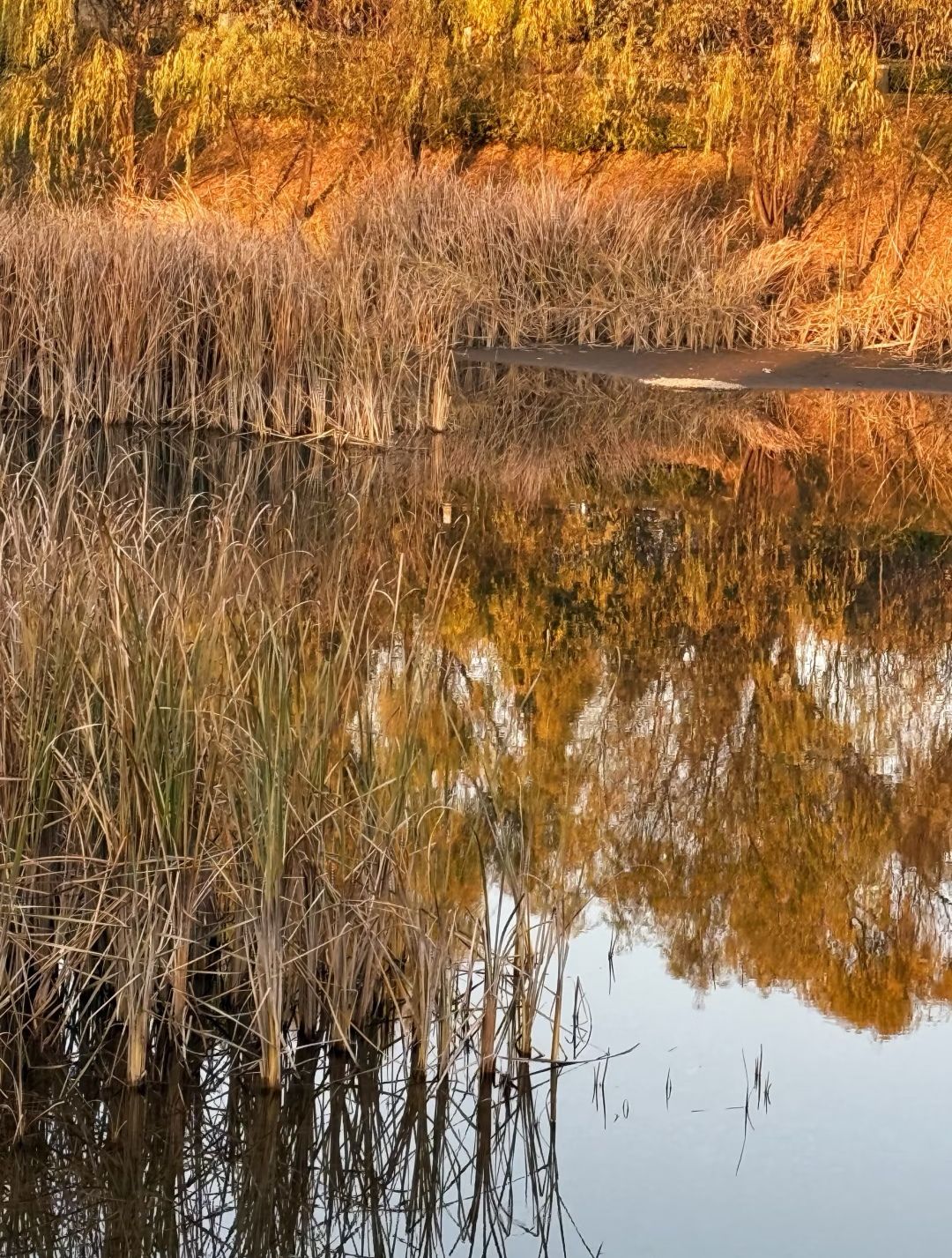 再往前走,就到了那片熟悉的芦苇荡。芦苇已经长得很高了,细长的苇杆在风中轻轻摇曳,顶端的芦花像一片片洁白的羽毛,随风飘散。我想起小时候,和小伙伴们在这里玩耍,我们会摘下芦花,做成各种好玩的东西,或者把芦花抛向空中,看着它们像雪花一样飘落。如今,那些纯真的时光已经远去,但这片芦苇荡依然每年都在秋风中绽放着它独特的美丽。