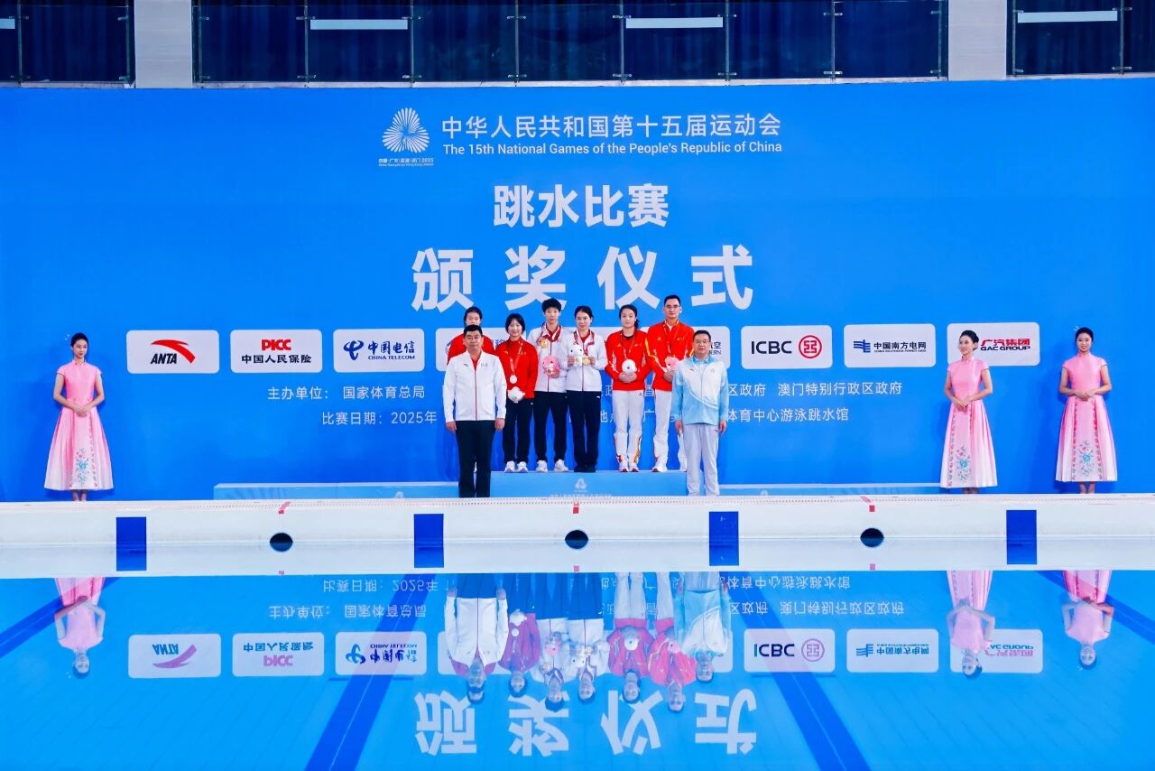 11月5日晚,第十五届全国运动会跳水女子1米板决赛在广东省奥体中心游泳跳水馆进行。