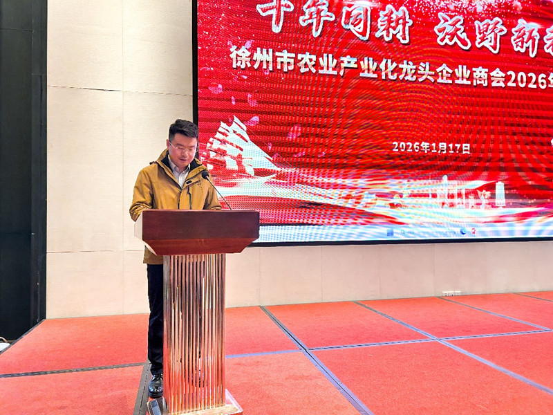 本网讯:2026年1月17日,江苏省徐州市农业产业化龙头企业商会举行十年同耕 沃野新程年会暨成立十周年盛典在徐州市宝信君澜度假酒店隆重举行。 本次大会审议了2025年度商会工作报告,全面总结年度工作成效,审议并通过了新一届执行会长及轮值会长任命事项,进