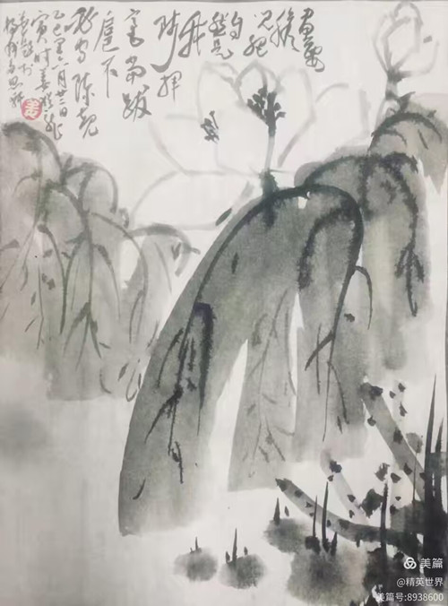 画荷课徒示范:画要胆儿肥,自然为我师。挥毫当跋扈,不必守陈规。