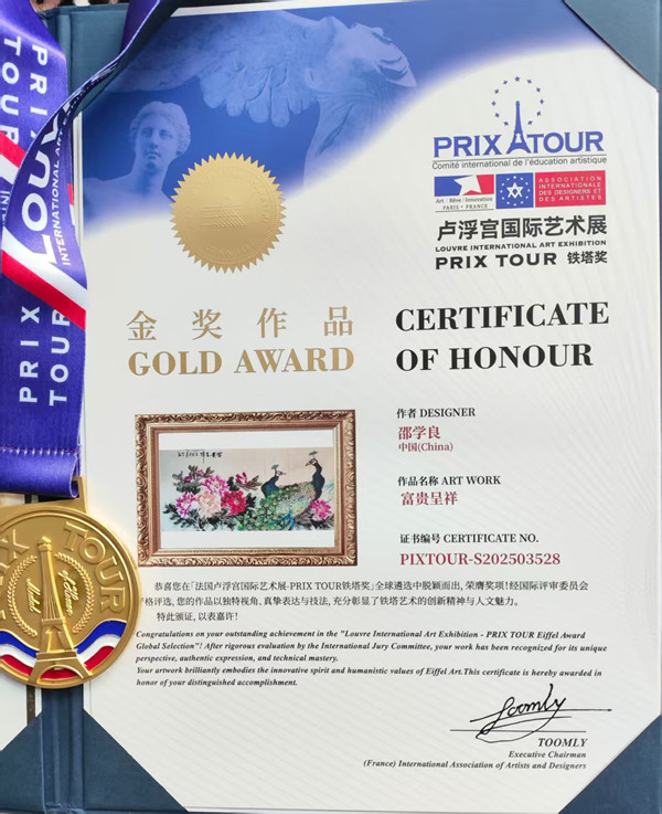 喜报|牡丹画家邵学良《富贵呈祥》荣膺法国卢浮宫国际艺术展铁塔奖金奖