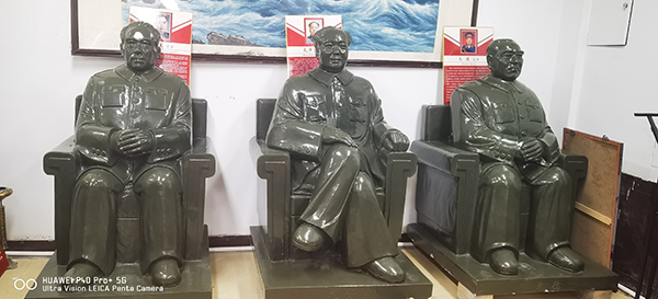 活动的核心环节——伟人雕像揭牌仪式,将现场气氛推向高潮。随着红绸缓缓落下,由洮砚石打造的巨型雕像群震撼亮相:毛泽东、周恩来、朱德三位伟人雕像每尊重达近4吨,身旁矗立的十大元帅、十位上将雕像同样气势恢宏,共同构成“红色文化+非遗艺术”的独特景观。雕像选材自甘肃优质洮砚石,雕像群的创作不仅是对老一辈无产阶级革命家的致敬,更希望以非遗技艺为桥梁,让红色文化通过具象化的艺术载体走进大众,成为“铭记伟人功绩、赓续红色血脉”的鲜活教材。