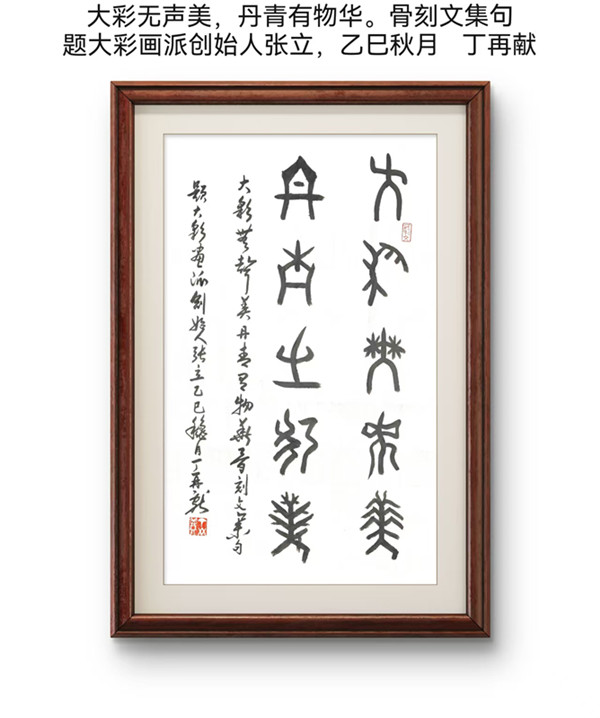 骨刻文集句,题大彩画派创始人张立,乙巳秋月,丁再献