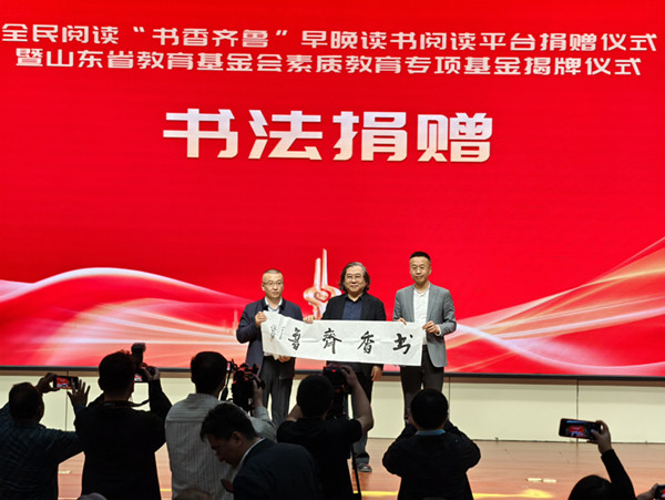 全民阅读“书香齐鲁”早晚读书阅读平台捐赠仪式暨山东省教育基金会素质教育专项基金揭牌仪式在济南举行