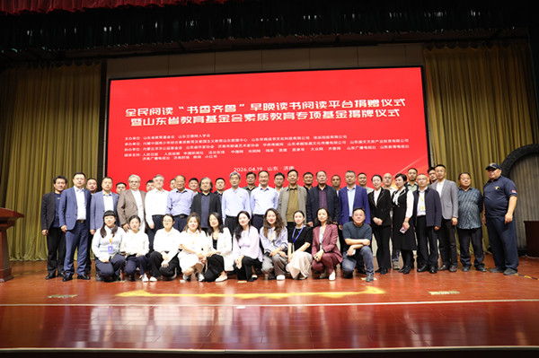 本网讯:在2026年首届全民阅读活动周即将拉开帷幕之际,全民阅读“书香齐鲁”早晚读书阅读平台捐赠仪式暨山东省教育基金会素质教育专项基金揭牌仪式2026年4月19日在济南鲍山学校隆重举行。本次活动以书为媒、以爱筑梦,同步启动了公益行动、作文大赛等系列举措,标志着山东“书香齐鲁”建设迈入“平台赋能+基金支撑+活动聚力”的新阶段。