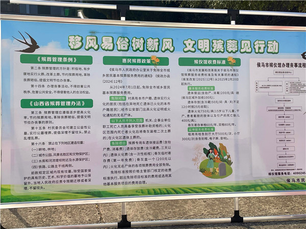(本网山西讯:张宇轩 郭海红)农历十月初一,是民族传统寄托对已故亲人哀思的寒衣节。为深入推进移风易俗,树立文明祭祀新风,确保这个寄托哀思的传统节日群众祭扫活动安全有序、文明和谐,侯马市提前部署、精心组织,11月20日(星期四,阴历十月初一)一大早,侯马市新时代文明实践文艺轻骑兵团队的志愿者们整装出发,奔赴市殡仪馆及周边重点区域,开展移风易俗、文明祭祀新时代文明实践执勤志愿服务活动,以实际行动引导市民摒弃陈规陋习,践行绿色、环保、安全的现代祭祀方式。