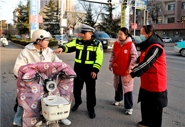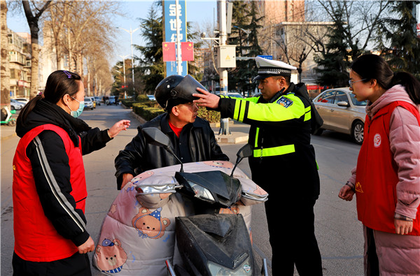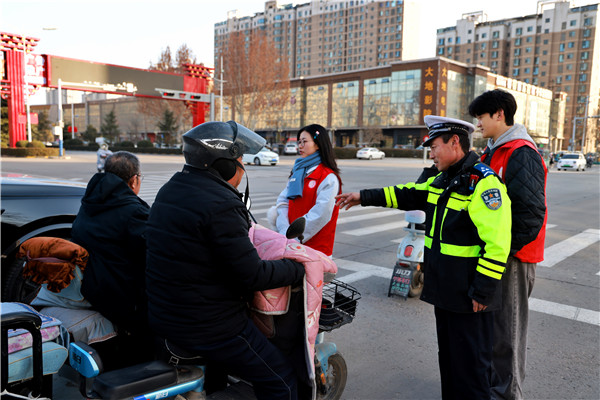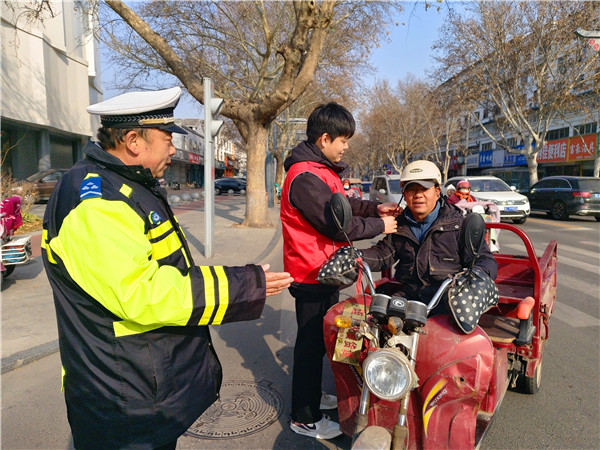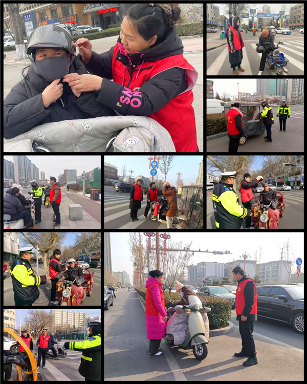 活动期间,志愿者们身着统一标识的马甲,在执勤交警的带领下,于每天上午9:00--11:30、下午3:00-6:00等交通高峰时段,在多个重要交通路段节点,开展了以“协助疏导——配合交警引导行人非机动车按交通信号灯有序行进”“文明劝导——对行人闯红灯、非机动车越线停车、骑乘电动车不佩戴安全头盔等不文明行为进行耐心劝导和纠正”“暖心服务——为老弱病残幼等特殊群体过马路提供帮助,并解答市民简单的道路咨询”为主要内容的服务活动。
