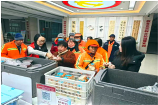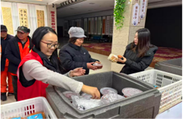 与此同时,社区工作人员为辖区困难群众送上热粥与面包,叮嘱他们注意冬日保暖,保重身体。牛叔感动地说:“每年腊八社区都想着我,这粥不仅好喝,更暖到了我心坎里!”一碗碗腊八粥,承载着社区对特殊群体的牵挂与关怀,让困难群众在寒冬中感受到浓浓的节日氛围与“家”的温暖。