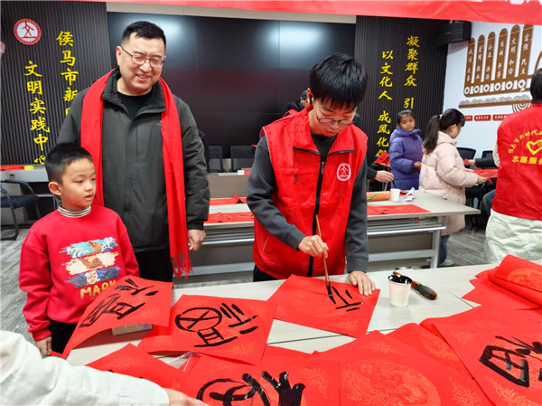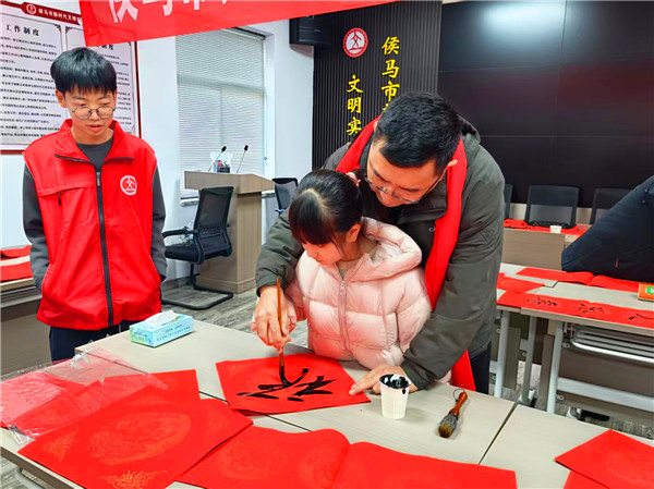 春联纸、大福字、墨汁、红围巾等活动材料,由爱心企业侯马市新裕房地产开发有限公司捐赠。