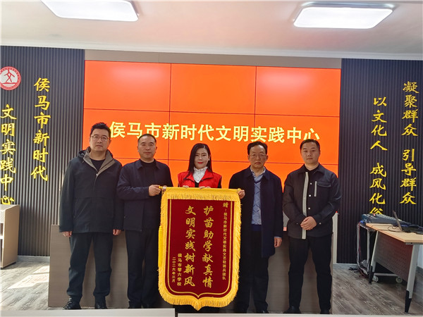 此次赠送锦旗,不仅是校方对侯马市新时代文明实践文艺轻骑兵团队爱心行动的肯定,也彰显了侯马市新时代文明实践工作扎根基层、服务群众的生动实践。双方共同期待在未来进一步加强合作,携手为培育时代新人、弘扬文明新风注入更多温暖与力量!