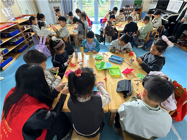 不一会儿,一幅幅充满童趣的剪纸作品新鲜出炉:嫩绿的柳枝、素雅的花朵、精巧的纸鸢,寄托着对先人的追思与对春天的向往。孩子们互相展示作品,分享创作心得,在动手实践中加深对清明文化的理解,感受传统手工艺的独特魅力。社区工作人员也借此机会向孩子们传递感恩、缅怀、向善的理念,引导他们珍惜当下生活,铭记先辈精神。