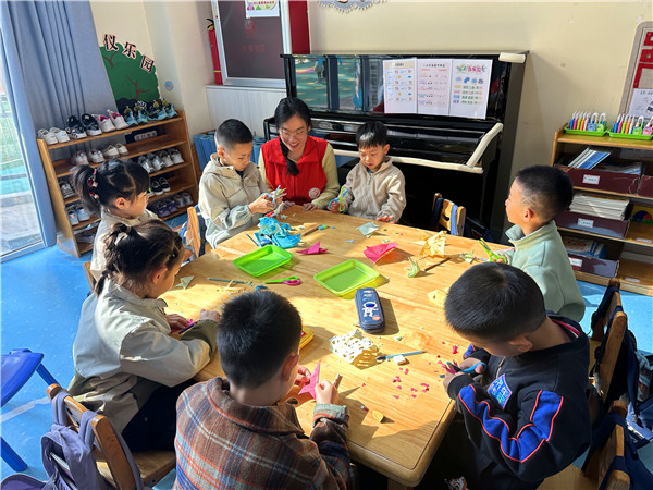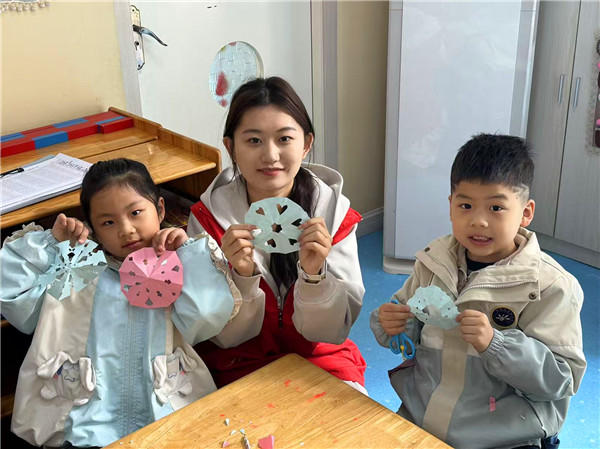 活动伊始,社区工作人员与幼儿园老师以通俗易懂的语言,为孩子们讲解清明节的由来、踏青、插柳、缅怀先烈等传统习俗,同步介绍剪纸非遗文化与基本技法,现场示范对折、描样、裁剪等步骤,耐心指导安全用剪要点。孩子们兴致盎然,手持彩纸与剪刀,认真跟随老师折叠、裁剪、镂空,在欢声笑语中专注创作。